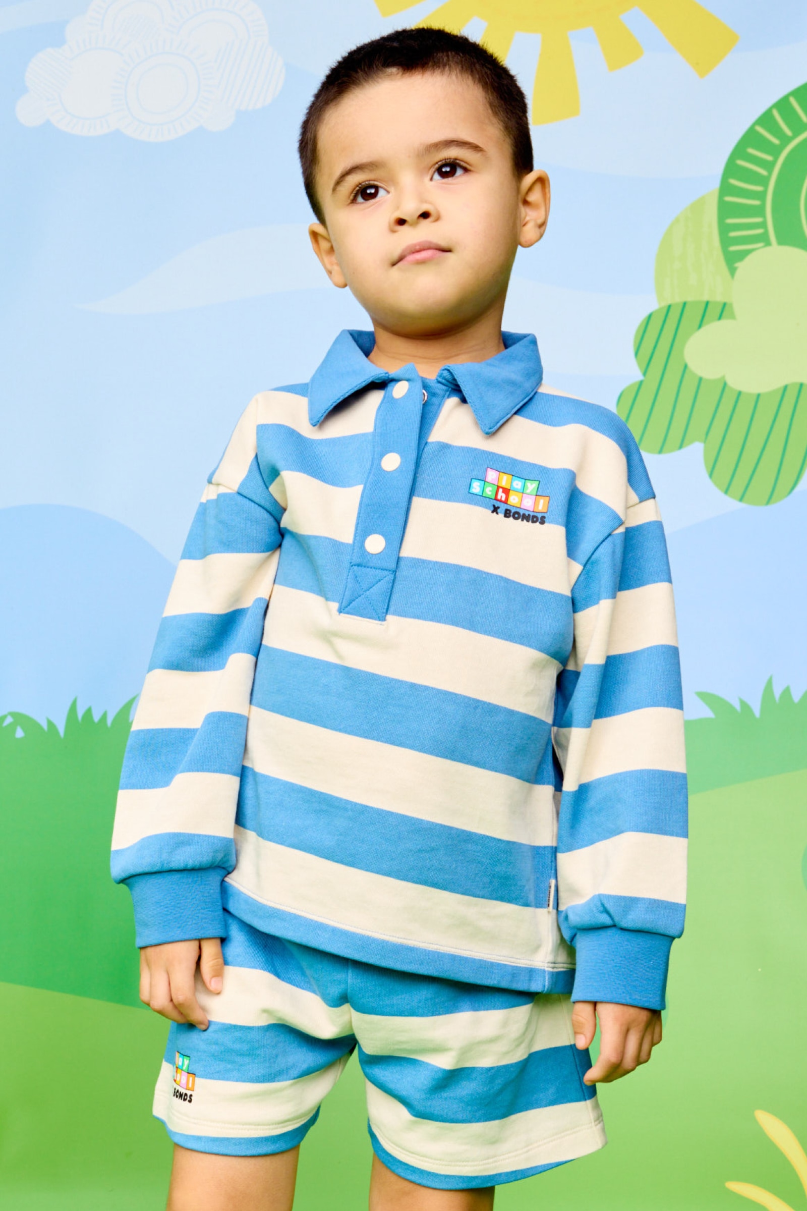 Whether they're kicking goals or just kicking back, the Play School X Bonds Rugby Pullover brings next-level fun to their wardrobe. Designed with a limited edition Play School print, this top is Little Ted' approved. Featuring a proper collar and ribbed cuffs, it's the kind of top that says ready to play.