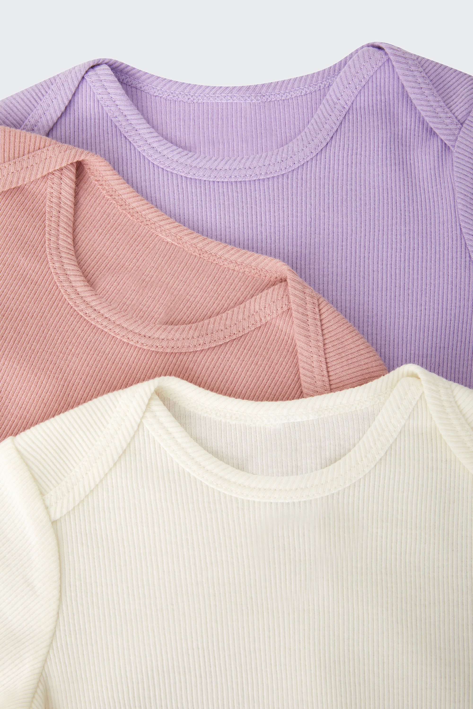 Stock up on cuteness with the Rib Long Sleeve Bodysuit 3 Pack. Made for all-day snuggling, these bodysuits are your go-to for easy layering and everyday wear. Practical, comfy, and super soft - you'll wonder what you ever did without them!