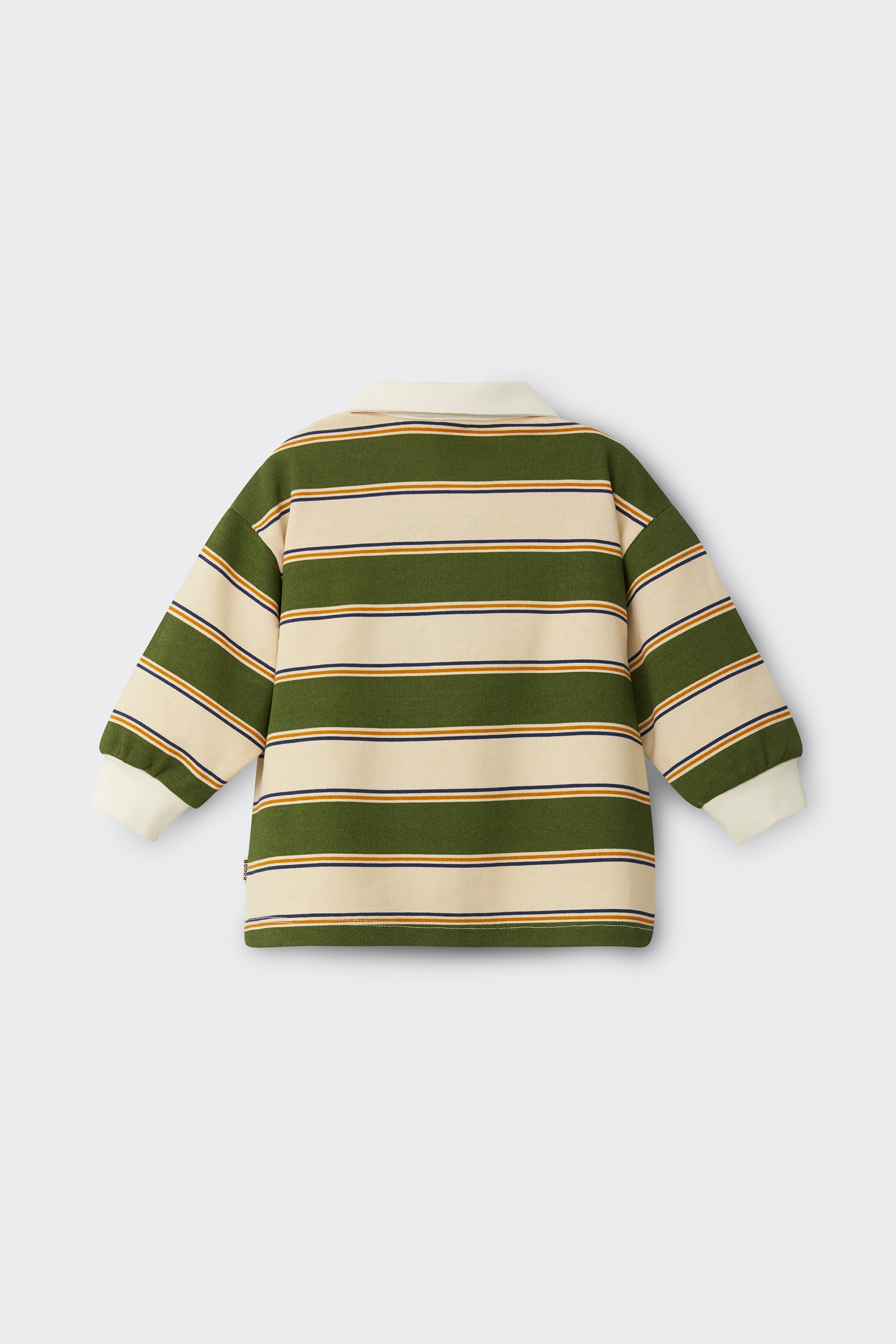 - • Baby coverall in a trendy rugby top style.